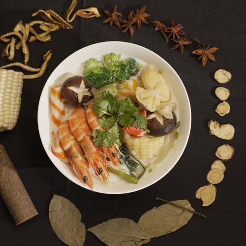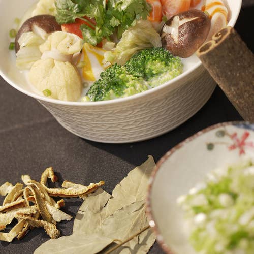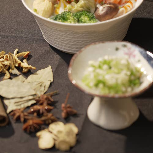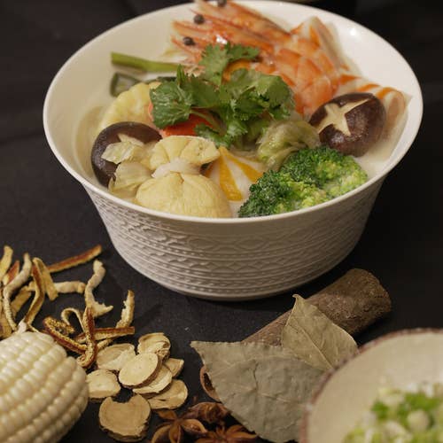 当店の特製スープは豚骨・牛骨・鶏ガラをじっくり煮込み、薬膳素材を加えており、コク深く後味もすっきり♪